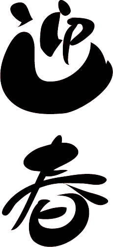 墨文字と水墨画・筆絵の流麗な和風年賀状素材です。作者ゆ女が毛筆で書いた文字をパソコンで色鮮やかに加工してます。像解像度360dpi〜200dpiの高画質画像です。ダウンロードしてプリンターを、はがきサイズに設定するだけで簡単に印刷できます。